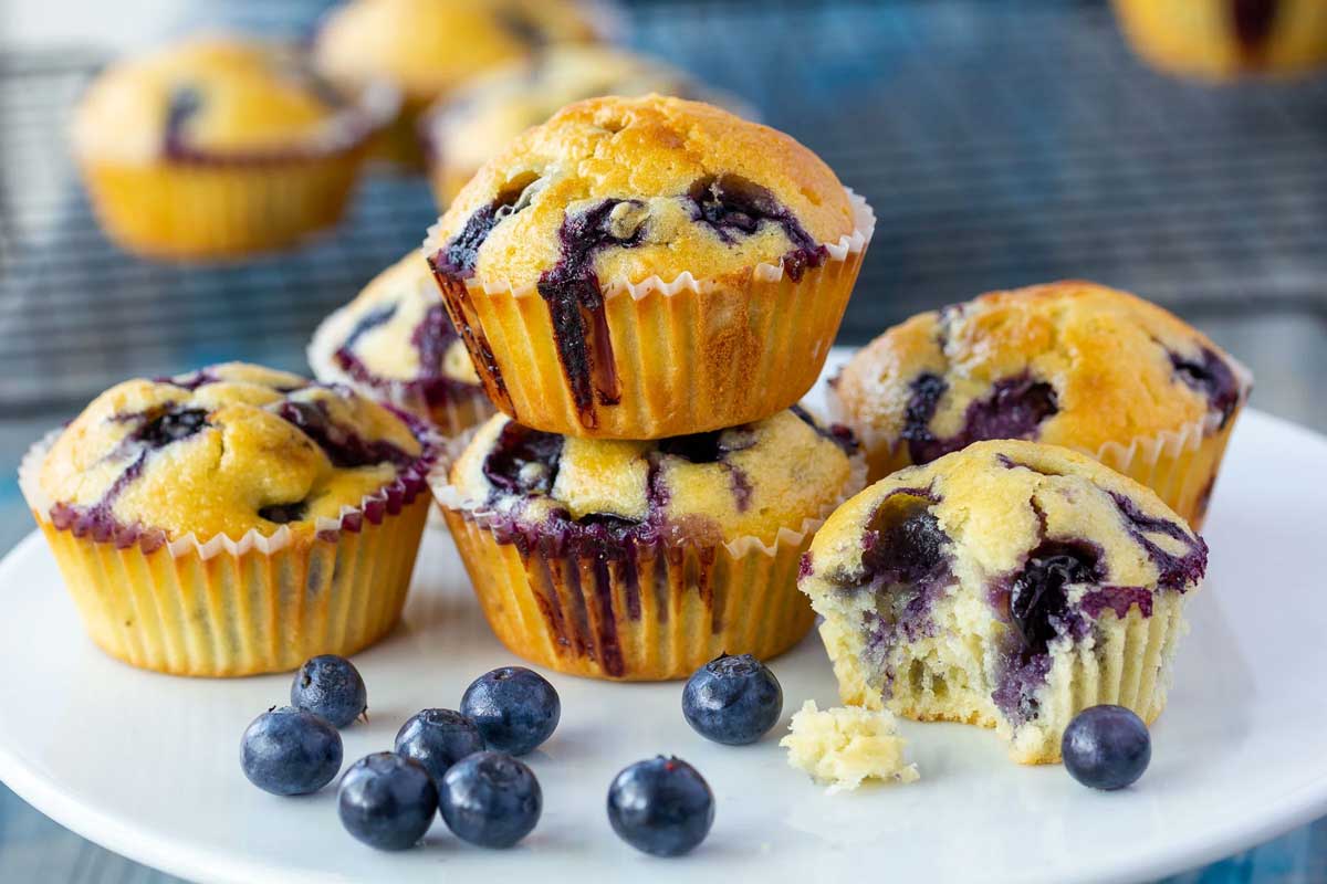 Muffins o magdalenas de arándanos (caseros, suaves y esponjosos)