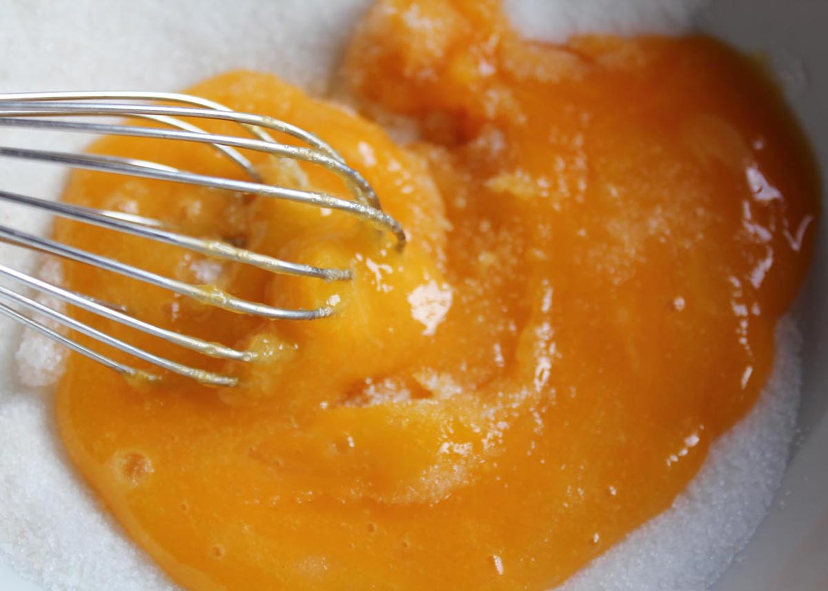 - En un cuenco mezclamos el azúcar con las yemas y la maizena.