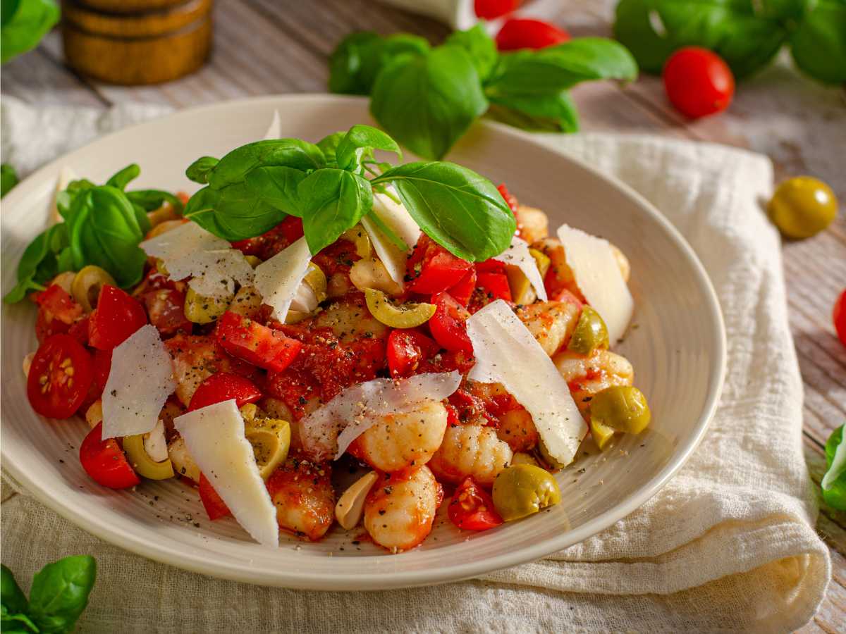 Si quieres preparar una receta de gnocchi con tomate con todo el sabor y aroma del Mediterráneo te recomendamos esta receta con tomates cherry y aceitunas, ¡te conquistará!:
