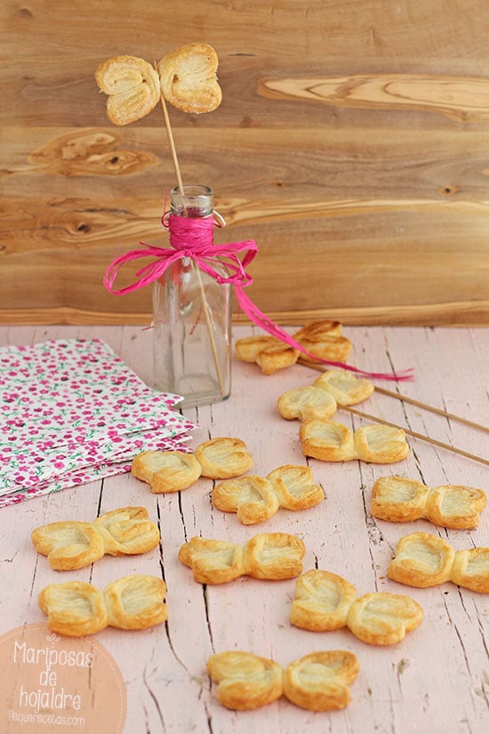 Son muy fáciles de preparar, incluso os animamos a que las preparéis con los peques de la casa. Os aseguro que estas mariposas de hojaldre volarán de la mesa como nunca, tanto que no es mala idea que hagáis el doble. Además aguantan varios días en una lata.