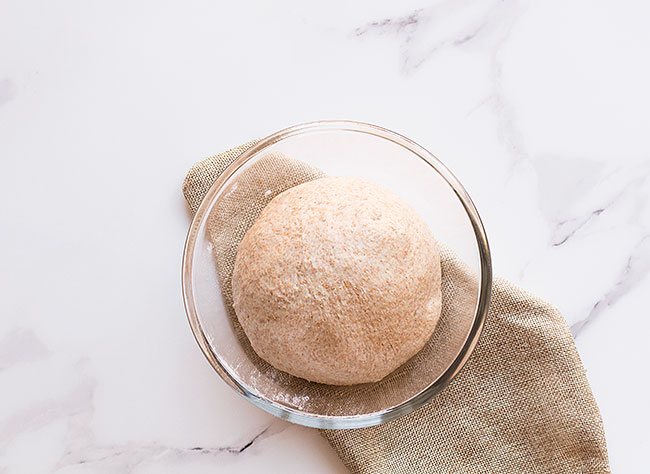- Formamos una bola con la masa y la disponemos en un cuenco amplio pincelado con un poco de aceite