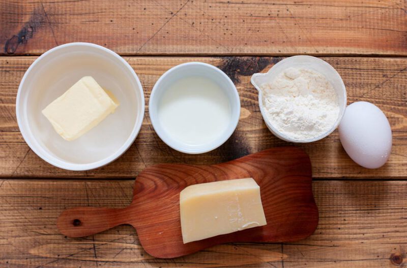 - En una cacerola, calienta la leche junto con la mantequilla y la sal hasta que la mantequilla se derrita completamente y la mezcla comience a hervir.