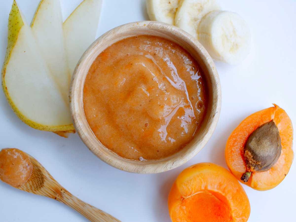 La papilla de albaricoque, pera y plátano es una combinación ideal para bebés a partir de los 6 meses, tanto si están empezando con los purés como si ya han probado la fruta por separado. El albaricoque es una fruta rica en vitaminas A, C y E, muy útil para proteger la piel, reforzar el sistema inmunitario y favorecer la visión. La pera, por su parte, tiene un alto contenido en agua y fibra soluble, perfecta para mejorar la digestión. Y el plátano aporta energía, potasio y una textura suave que ayuda a unir todo.