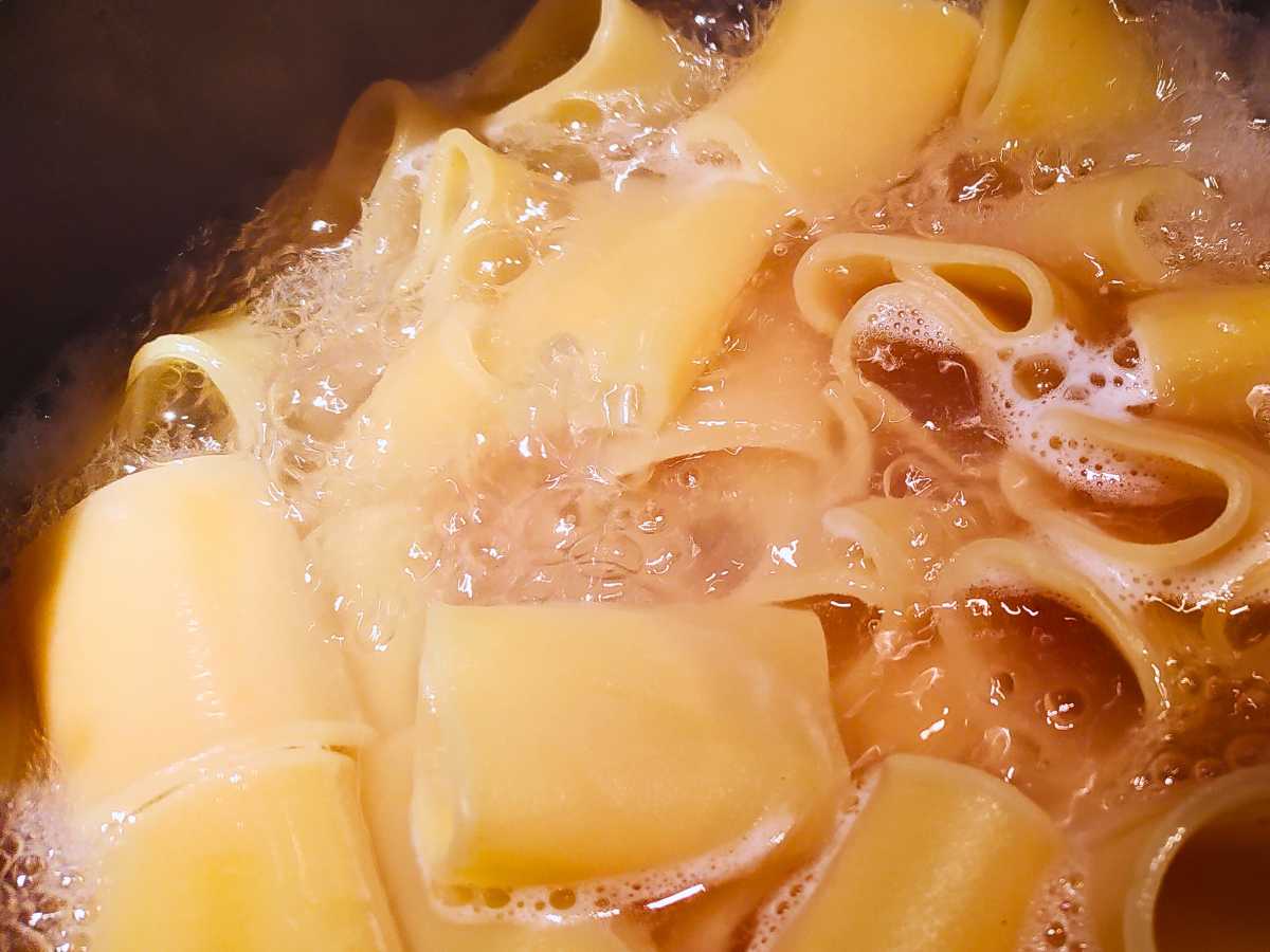 - Mientras tanto, hemos puesto a cocer la pasta en agua salada, siguiendo las instrucciones del paquete.