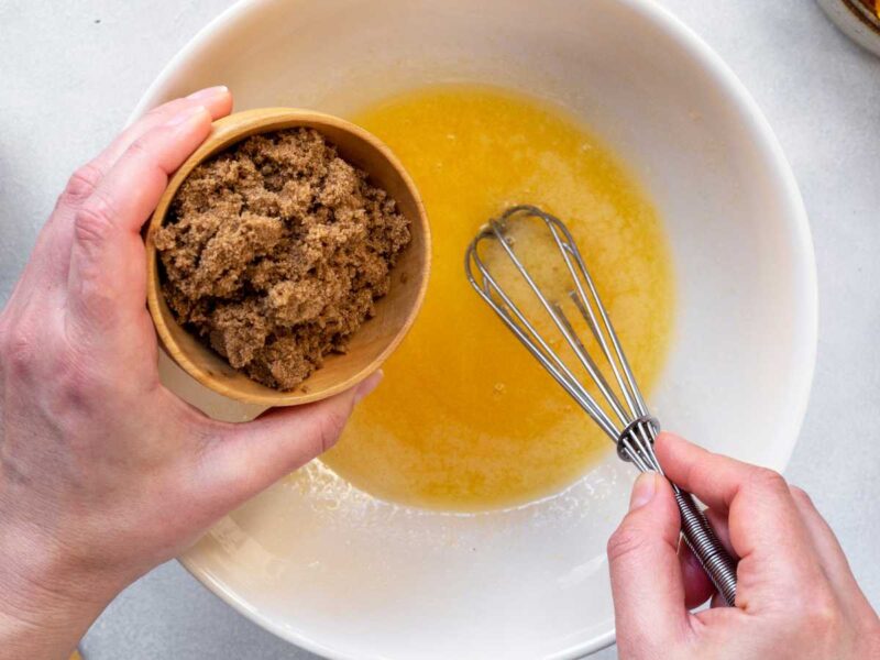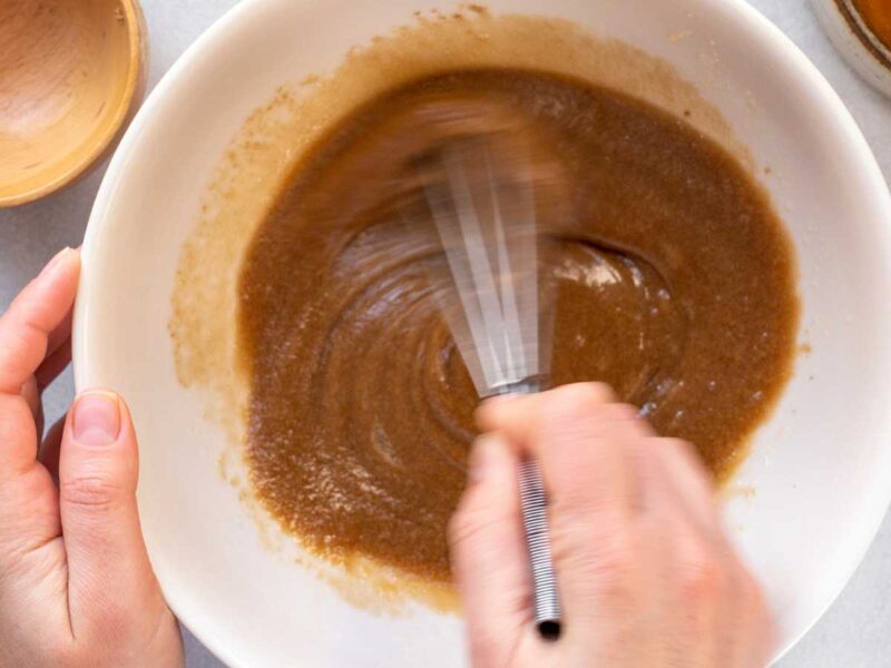 - Añadimos el azúcar moreno y mezclamos bien con el boniato hasta que quede integrado.