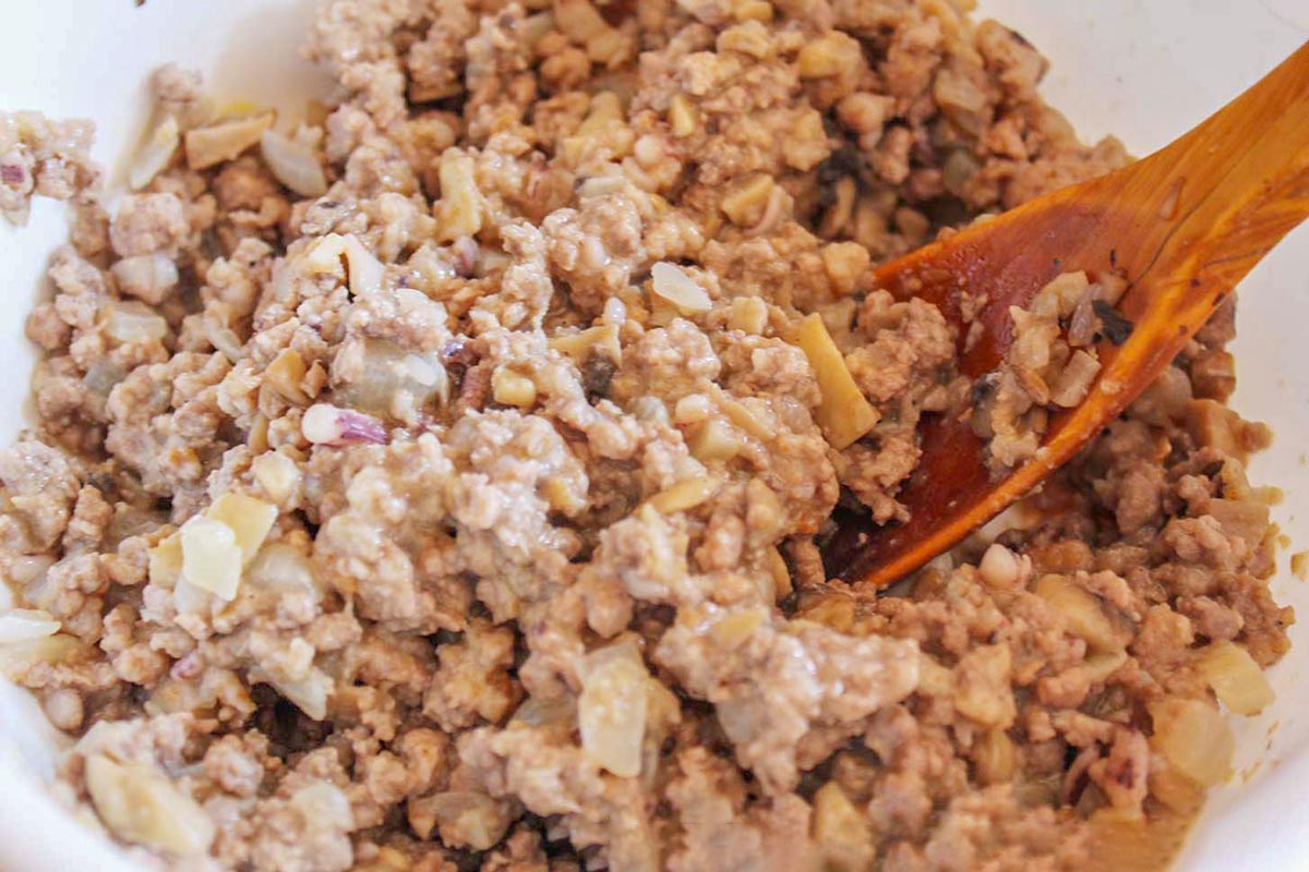 - En una sartén, dora la cebolla picada y agrega la carne picada.