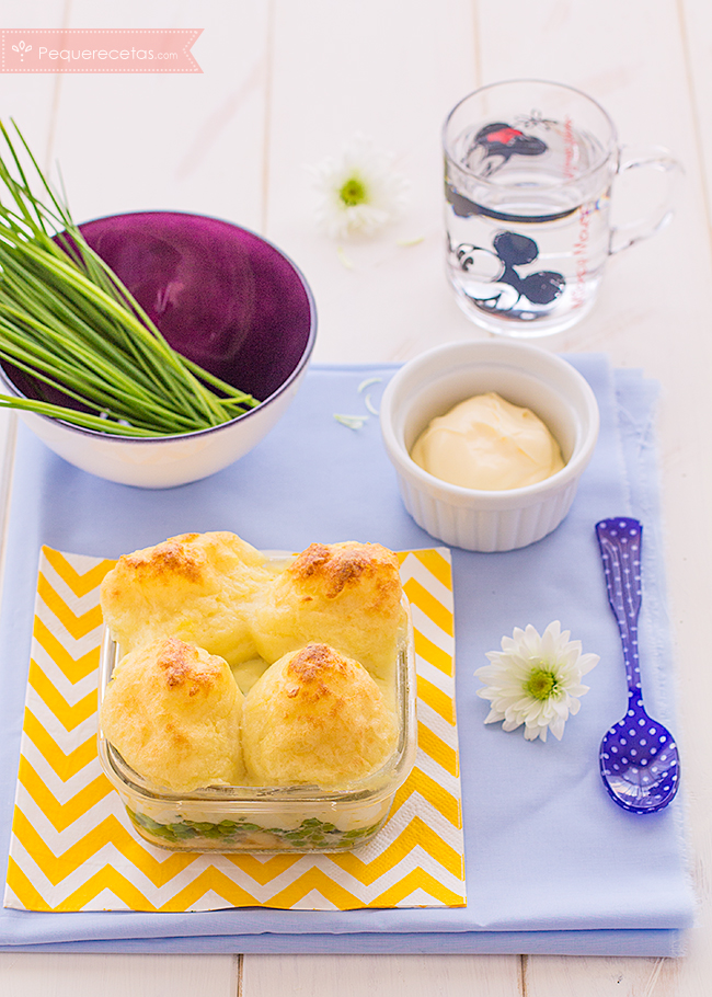 Con una bonita presentación, este pastel de pescado con puré de patatas hará las delicias de cualquier niño.