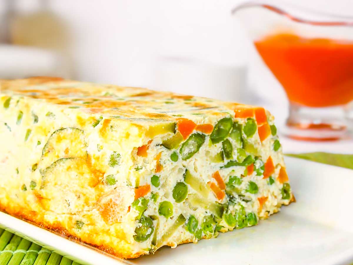 Este pastel con verduras tiene la ventaja de que puedes prepararlo con antelación, y luego simplemente calentar o cortar y tomar frío. Puedes acompañar con un poco de salsa de tomate frito.