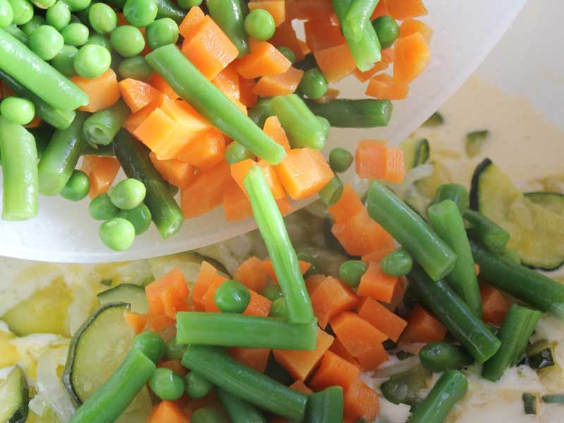 La hice hoy pa la comida y quedó riquisima, mi niña se comió una buena porción!! Las verduras no las compré congeladas, las hice en la vaporera, las pique y ya!