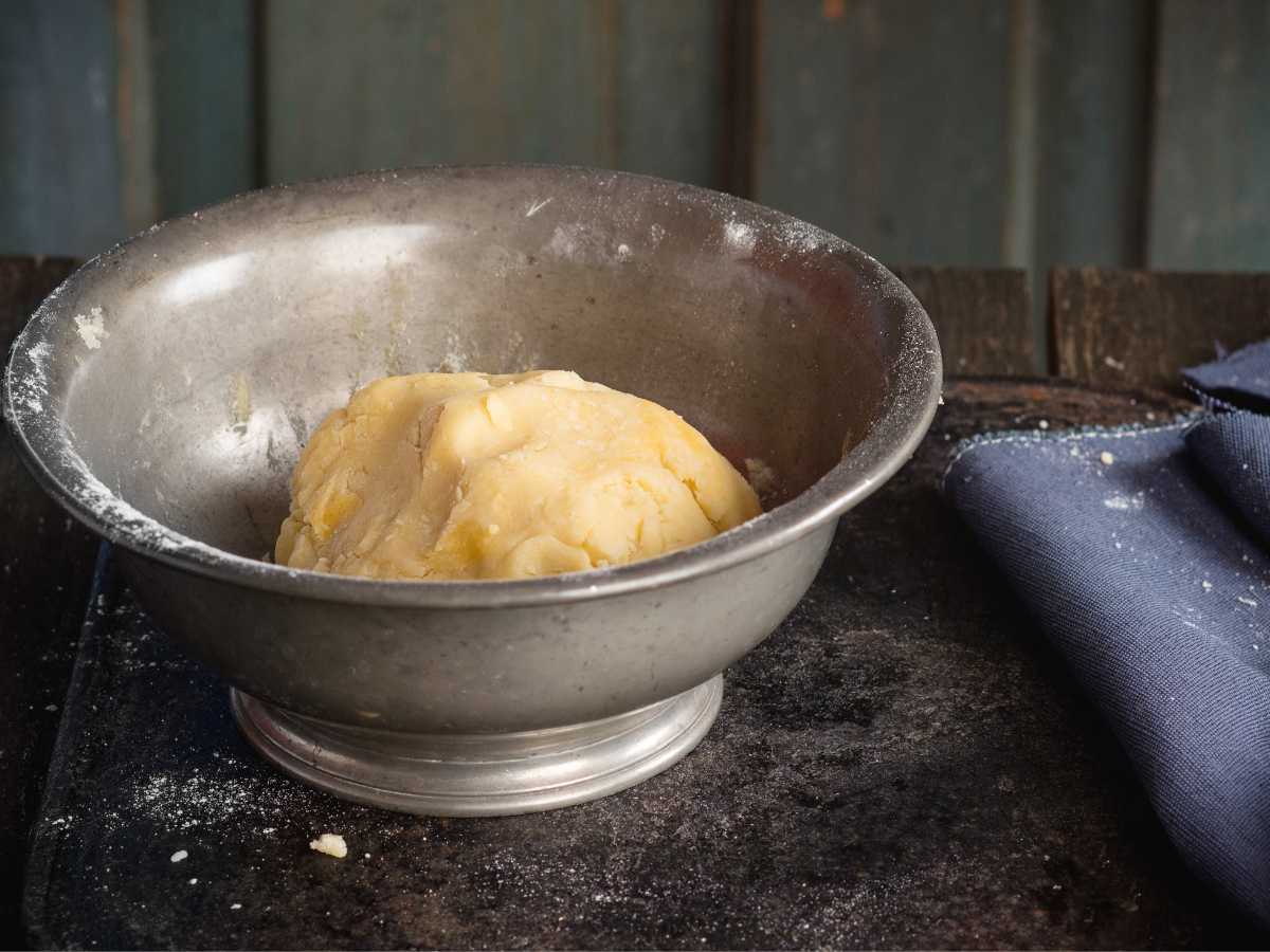 - En un bol grande, mezcla la harina con la mantequilla y el azúcar hasta obtener una textura arenosa.
