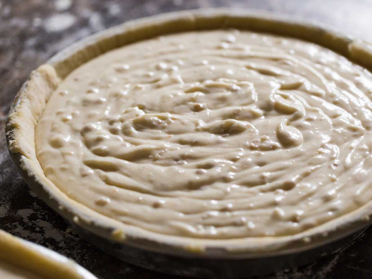 - Vierte la mezcla de ricotta y trigo sobre la masa.