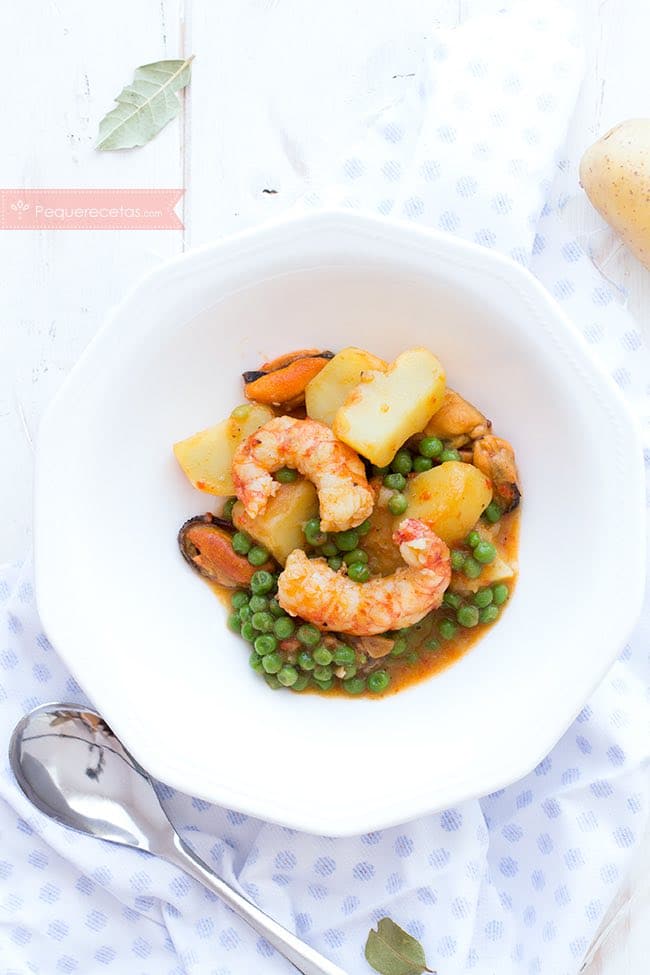 ¡Qué ricas son las patatas a la marinera! Se trata de un plato único y completo para toda la familia, muy sencillo de elaborar y consistente; un plato de cuchara para disfrutar en invierno cuando fuera hace frío, cada cucharada es un auténtico placer porque es un guiso muy sabroso, además de económico.