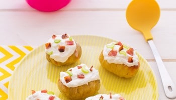 Hoy vamos a hacer patatas asadas rellenas ¿A qué niño no le gustan las patatas rellenas de las ferias? Pues en casa podemos hacerlas igualmente y, además, gracias al microondas, en menos de 10 minutos todo el proceso y nuestras patatas asadas listas.