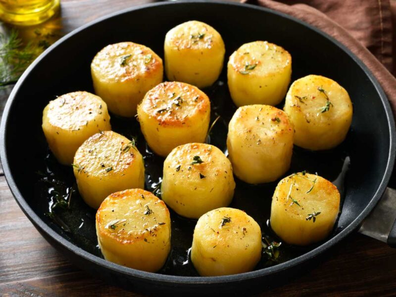 - Sella bien las patatas: Asegúrate de dorar bien las patatas por ambos lados antes de añadir el caldo. Este paso es crucial para lograr una capa exterior crujiente y caramelizada. No tengas prisa, dales el tiempo necesario para que adquieran un bonito color dorado.