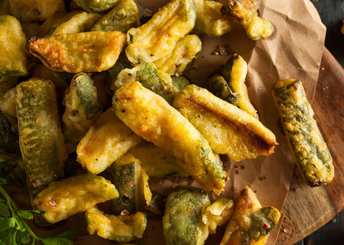 - Fríe los bastones de calabacín en el aceite caliente, hasta que estén dorados y crujientes.
