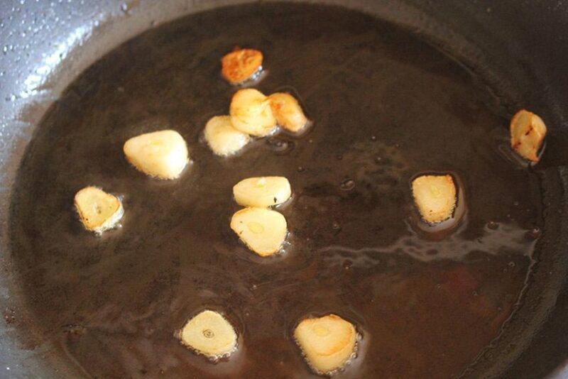 - En una sartén, con un poco de aceite de oliva virgen extra, doramos los ajos.