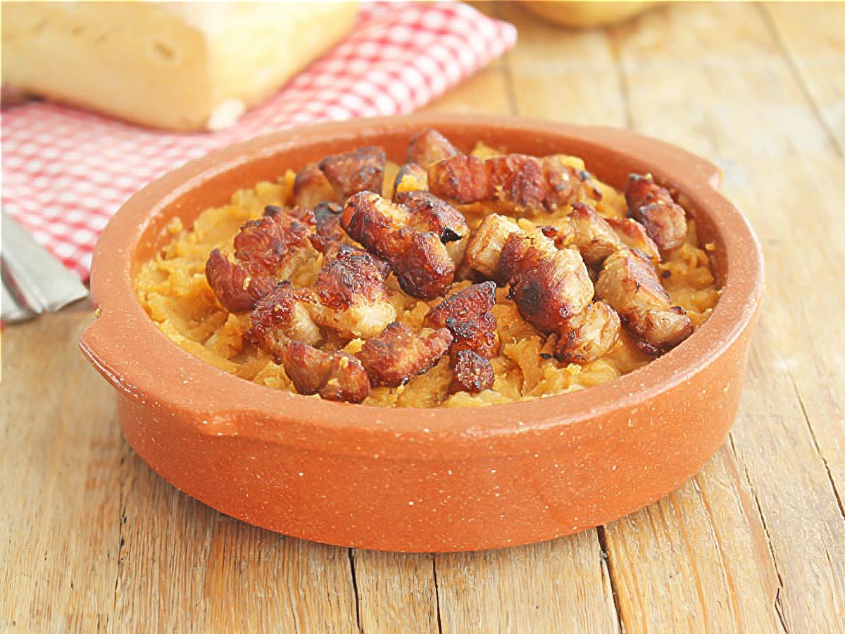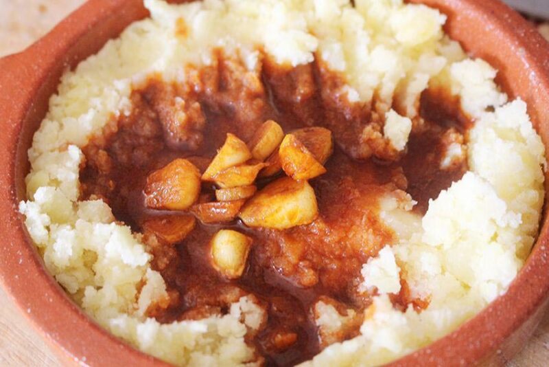 Las patatas revolconas, también conocidas como “patatas meneás” o “patatas machaconas“, son un plato tradicional de la cocina castellana, especialmente popular en provincias como Ávila y Salamanca. Se trata de una receta sencilla pero muy sabrosa, que consiste en puré de patatas mezclado con pimentón y acompañado de torreznos o panceta crujiente.