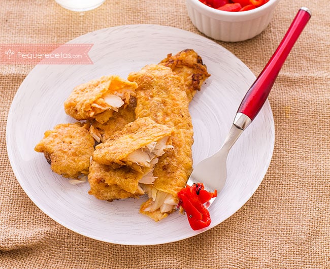 - Poner al fuego una sartén honda con abundante aceite y cuando esté bien caliente, rebozar las tiras de bacalao en la masa y echarlos en la sartén.