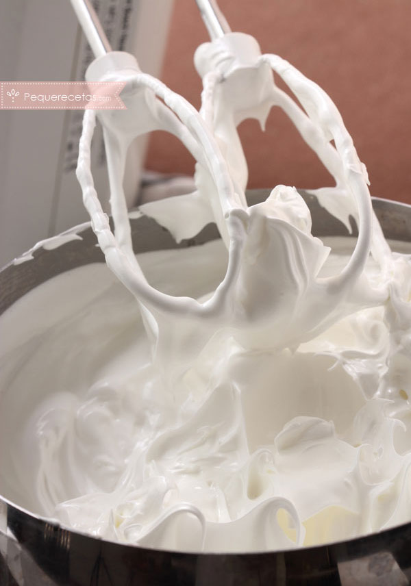 En esta receta se puede utilizar el merengue francés que es el que os explicamos, o el merengue suizo, algo más complejo porque se hace al baño María, pero cuya consistencia y duración es mayor que el merengue francés. Si nos decantamos por este último hay que hornear inmediatamente ya que de otra forma se bajará porque su duración es muy limitada.