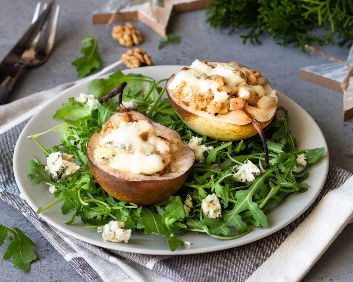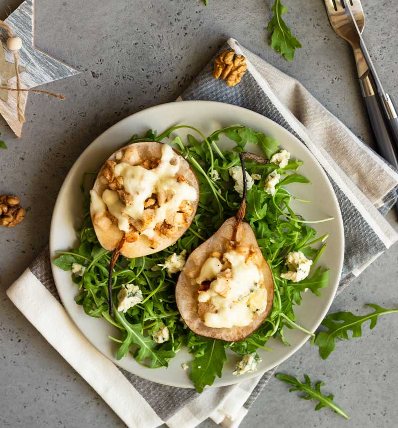 - No te pases con el queso: El gorgonzola tiene un sabor fuerte, así que no es necesario poner demasiado. Un trozo pequeño en cada mitad de pera es suficiente para darle ese toque cremoso y sabroso sin que resulte empalagoso.