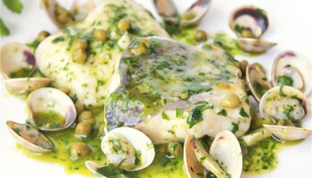 La merluza a la marinera es una de las recetas de merluza que conquista paladares por su delicado sabor y suculenta salsa con vino blanco, almejas y gambas.