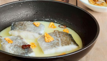 El bacalao al pil pil es un plato emblemático de la cocina vasca que ha conquistado paladares en todo el mundo por su cremosa y untuosa salsa. En esta receta aprenderás a cocinar lomos de bacalao desalado en una salsa emulsionada solo con aceite de oliva y la gelatina natural del pescado.