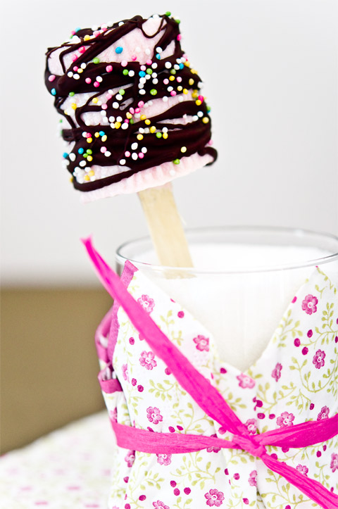 - Inmediatamente, espolvoreamos unos sprinkles por encima. El chocolate cuajará enseguida.