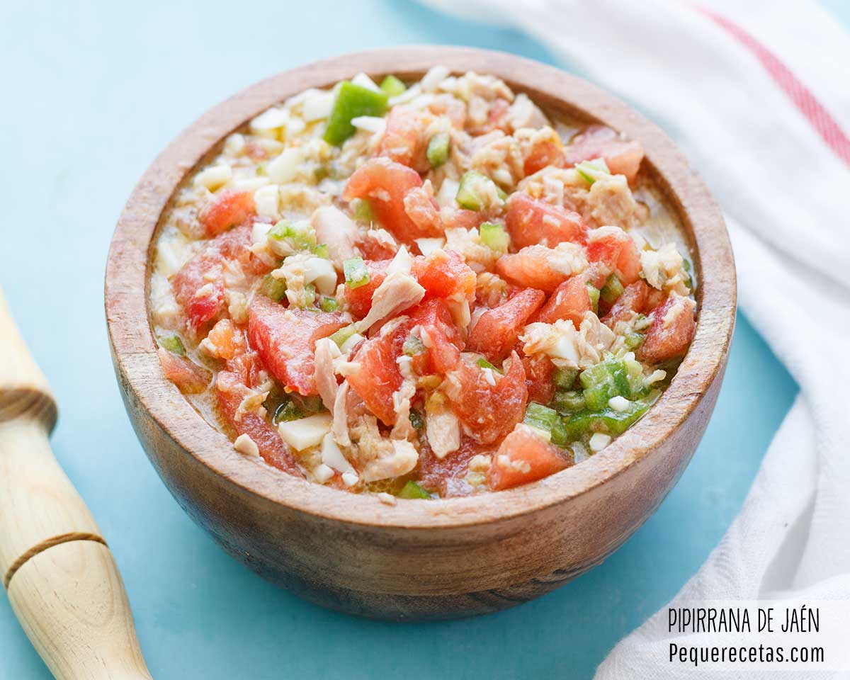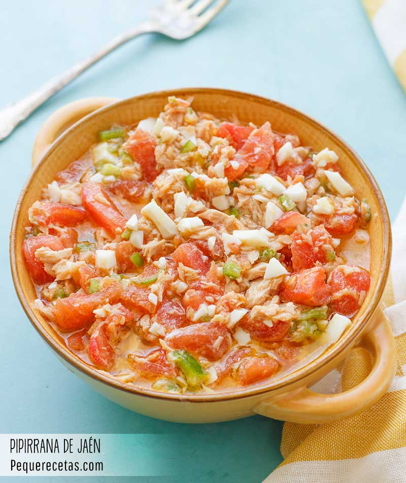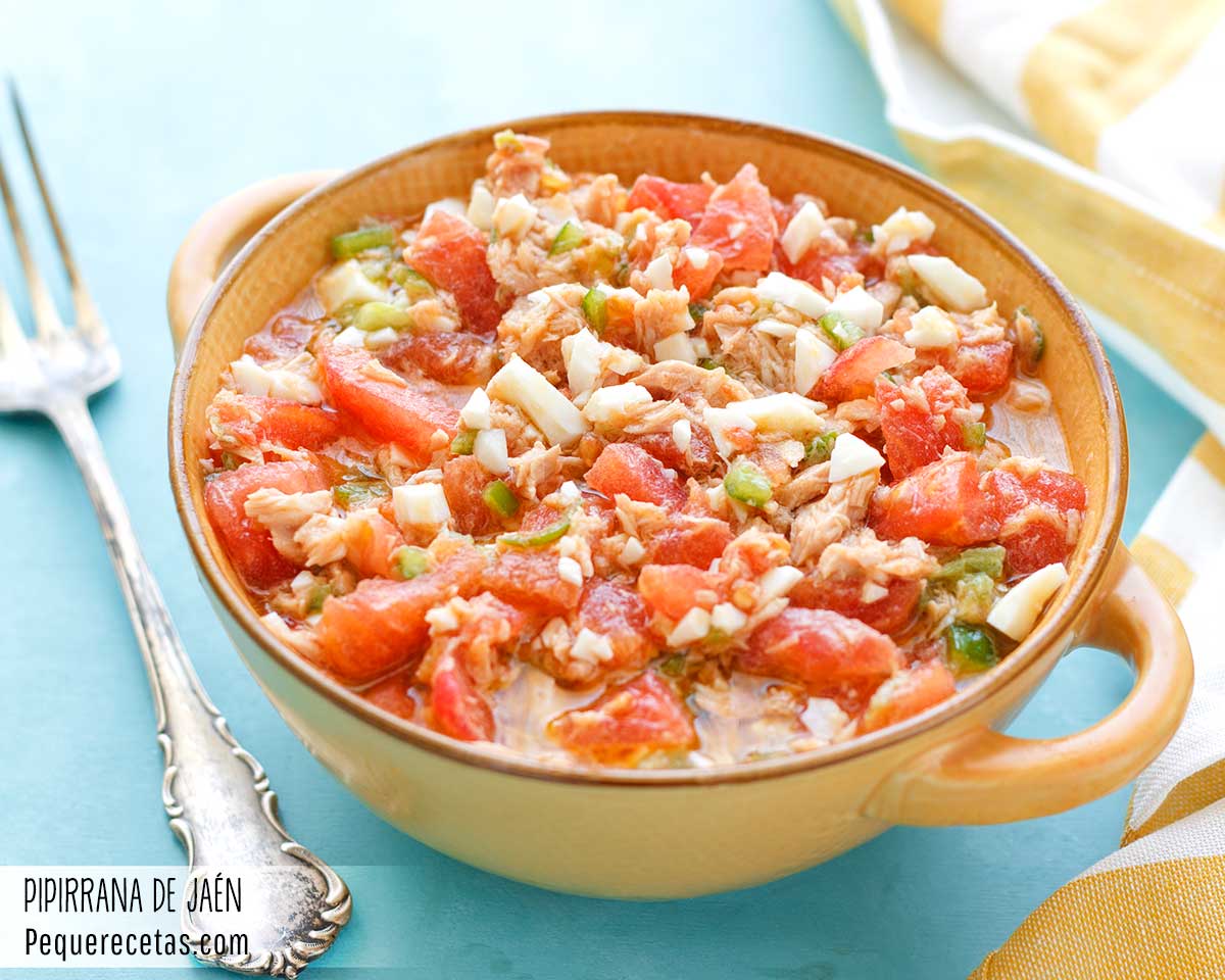 La pipirrana es una de las recetas más tradicionales de Jaén, especialmente en verano, cuando se consume de forma habitual. Aunque existen diferentes versiones de pipirrana en otras zonas de la geografía andaluza, donde adopta también otros nombres, como piriñaca, o picadillo, la receta tradicional de Jaén capital se diferencia porque no lleva pepino, ni cebolla, ni patatas o aceitunas.