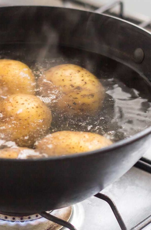 - Cuando comience a hervir dejamos que cuezan durante 15-20 minutos, dependiendo del tamaño de las patatas, hasta que al pincharlas con un cuchillo las notas sin resistencia en el interior.