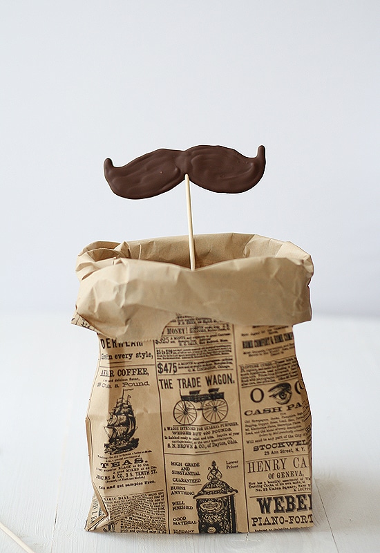 Además no necesitaréis ningún equipamiento especial para preparar estas piruletas de chocolate, unas brochetas de madera, papel vegetal, y una plantilla que podéis encontrar y descargar gratuitamente en Pequeocio. Incluso los más peques pueden colaborar dibujando sus bigotes favoritos.