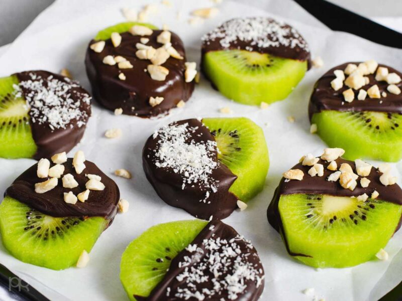 - No abuses del chocolate caliente: Si está demasiado caliente, puede hacer que el kiwi suelte jugo y dificulte la cobertura.