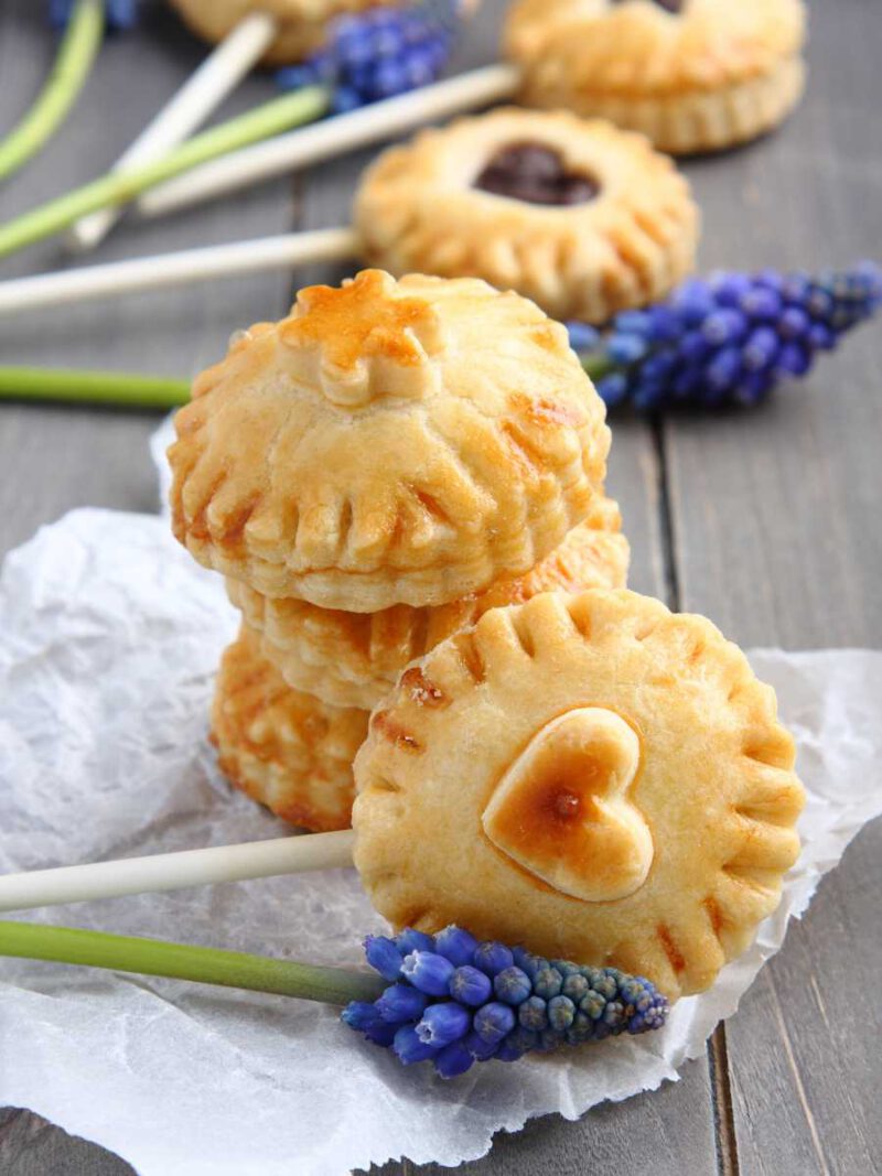 Y si quieres sorprender a tu pareja en San Valentín, puedes cortar el hojaldre en forma de corazón antes de rellenarlas. Estas piruletas son un detalle encantador y delicioso que hará de este día algo inolvidable.