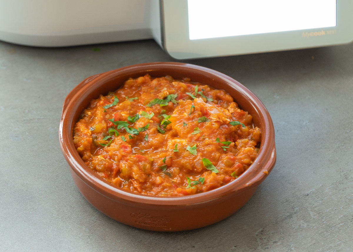 Además, con el robot de cocina Mycook lo tendrás listo en apenas media hora, solo tienes que cortar las verduras en trozos grandes e ir siguiendo las instrucciones que os damos para disfrutar de tu pisto en muy poco tiempo, ideal como acompañante de carnes y pescado o para tomar como plato principal con un huevo frito y unas rebanadas de pan.