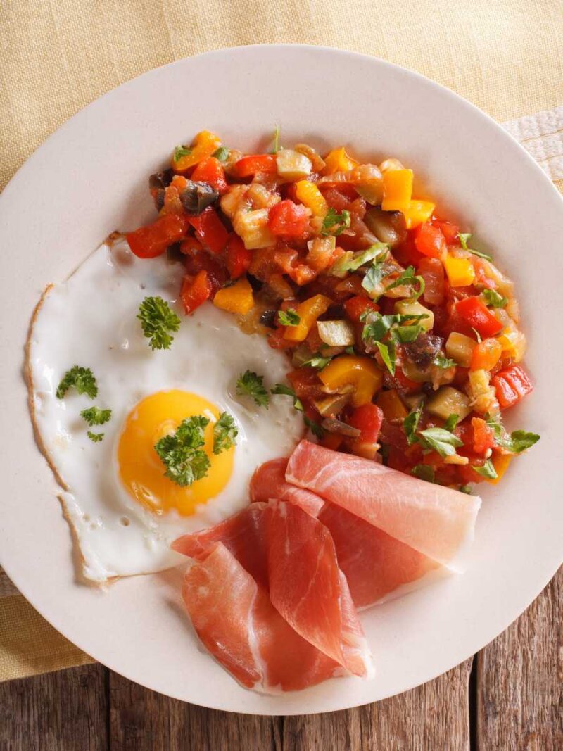 Un huevo frito y unas patatas fritas son los compañeros tradicionales del pisto, pero si quieres optar por un acompañamiento más ligero, os aconsejamos un arroz blanco o huevos al plato por ejemplo.
