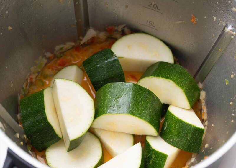 - Troceamos el calabacín programando 2 segundos, velocidad 4.