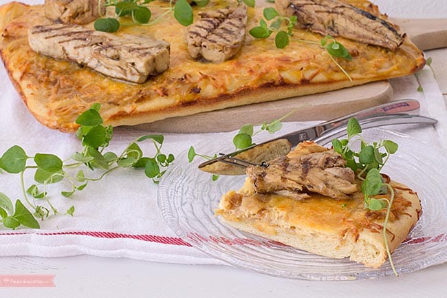 Para prepararla hemos usado la receta de masa de pizza que os contamos hace tiempo, que queda siempre esponjosa y suave ¡esperamos que la disfrutéis!