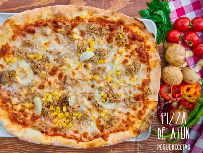 Si os gustan las pizzas caseras y el atún, esta pizza con atún y maíz que os traemos hoy os va a encantar.