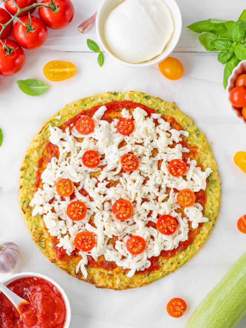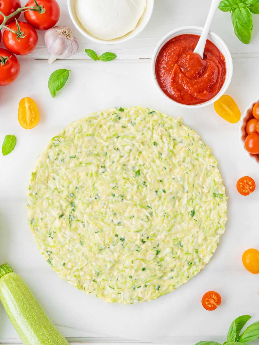 - Base de calabacín keto: Si estás siguiendo una dieta keto, asegúrate de usar harinas bajas en carbohidratos como la de almendra o la de coco. También puedes aumentar la cantidad de queso en la receta para mantener un buen balance de grasas.