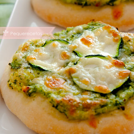 Seguro que nadie puede resistirse a estas minipizzas. Llevan mozzarella, queso parmesano, un poquito de ajo, calabacín y albahaca y quedan ¡simplemente deliciosas! Incluso, se me ocurre que podéis crear pequeñas caritas de monstruos en las pizzas para hacerlas más divertidas y “disimular” el verde.