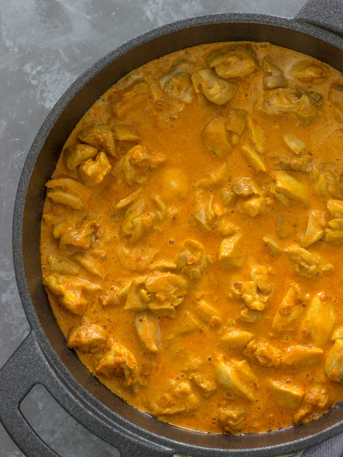 El pollo al curry con nata es una de las variantes de este popular plato de la India que los británicos extendieron por todo el mundo.