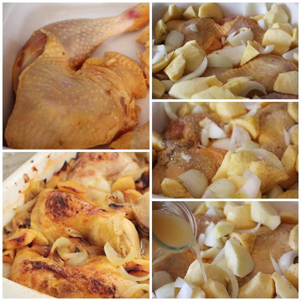 Receta de contramuslos de pollo asado con manzanas