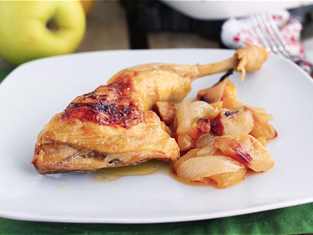Cómo servir los contramuslos de pollo asado con manzana