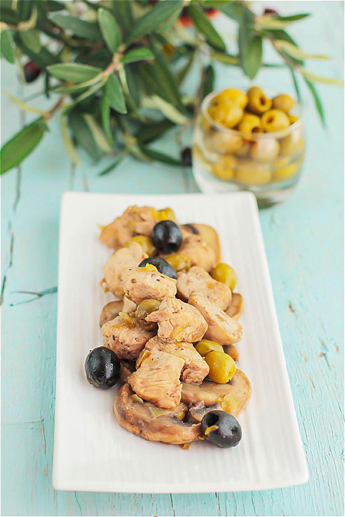 Cómo hacer pollo con aceitunas y champiñones