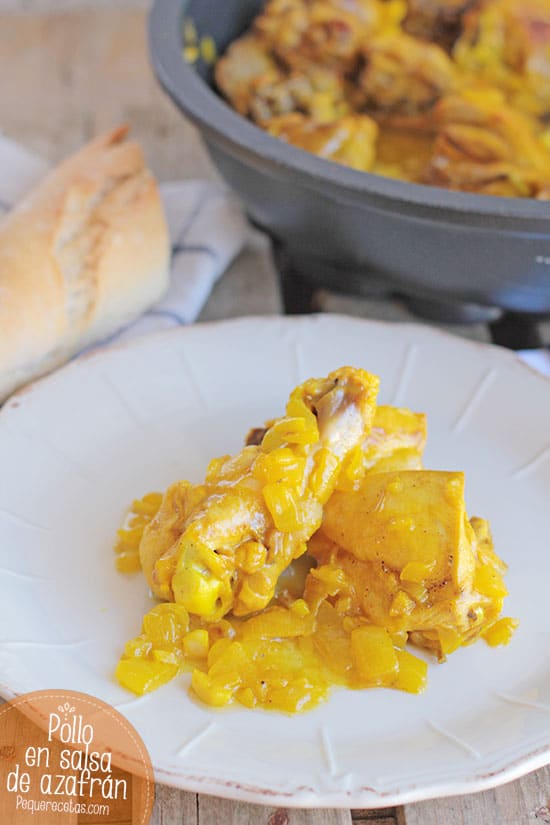 Podéis tener este plato preparado de la víspera y para acompañar unas patatas fritas le van genial. Os animo a que hagáis en casa este pollo en salsa de azafrán y luego nos contáis si os ha gustado.
