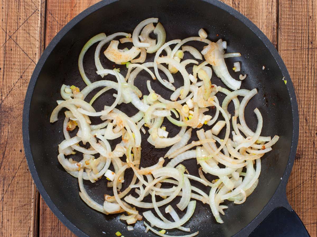 - En la misma sartén, agrega la cebolla y el ajo picados.
