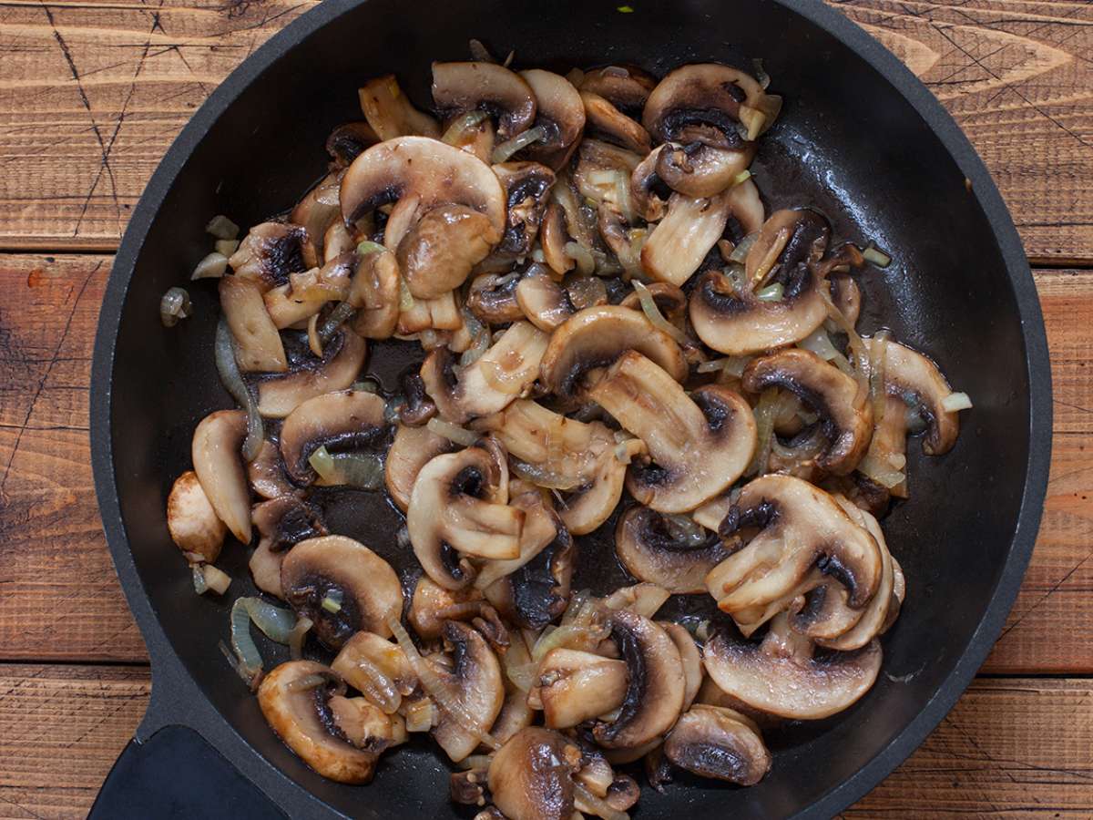 - Añade los champiñones en rodajas y cocina hasta que estén dorados y todo el líquido se haya evaporado.