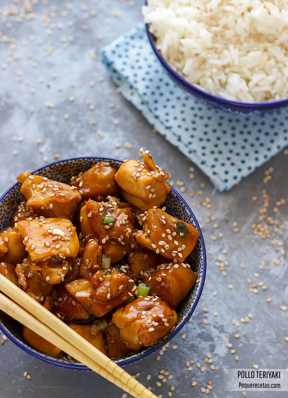 Lo mejor de todo es que este pollo al teriyaki tiene poca o ninguna dificultad, tan solo encontrar los ingredientes para hacer la salsa teriyaki, salsa de soja japonesa o “shoyu”, sake (bebida fermentada de arroz), mirin (vino de arroz japonés) y azúcar, pero os vamos a indicar dónde puedes comprarlos fácilmente por internet. A esta salsa se le puede añadir también cebolleta, jengibre y sésamo tostado, que le aportan aún más matices a la salsa.