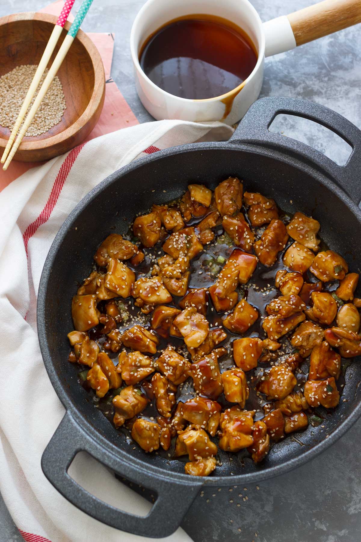 - Vamos moviendo la salsa junto al pollo, y veréis que poco a poco la salsa se va espesando y “lacando” el pollo, dándole ese brillo característico del teriyaki.