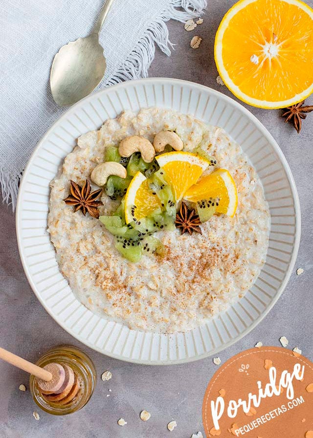 Receta de porridge o gachas de avena con fruta y frutos secos