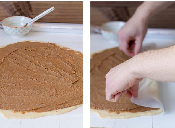- Estiramos la masa con un rodillo y le damos forma rectangular.